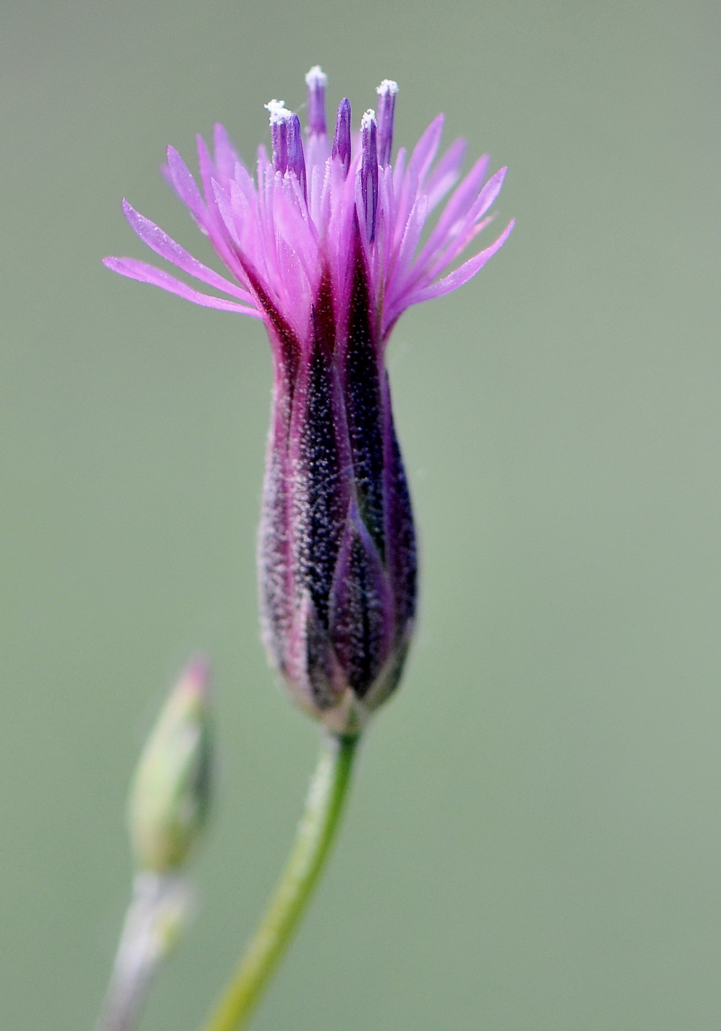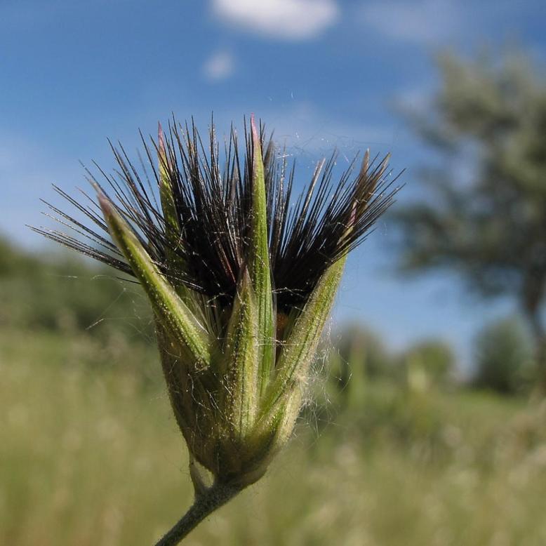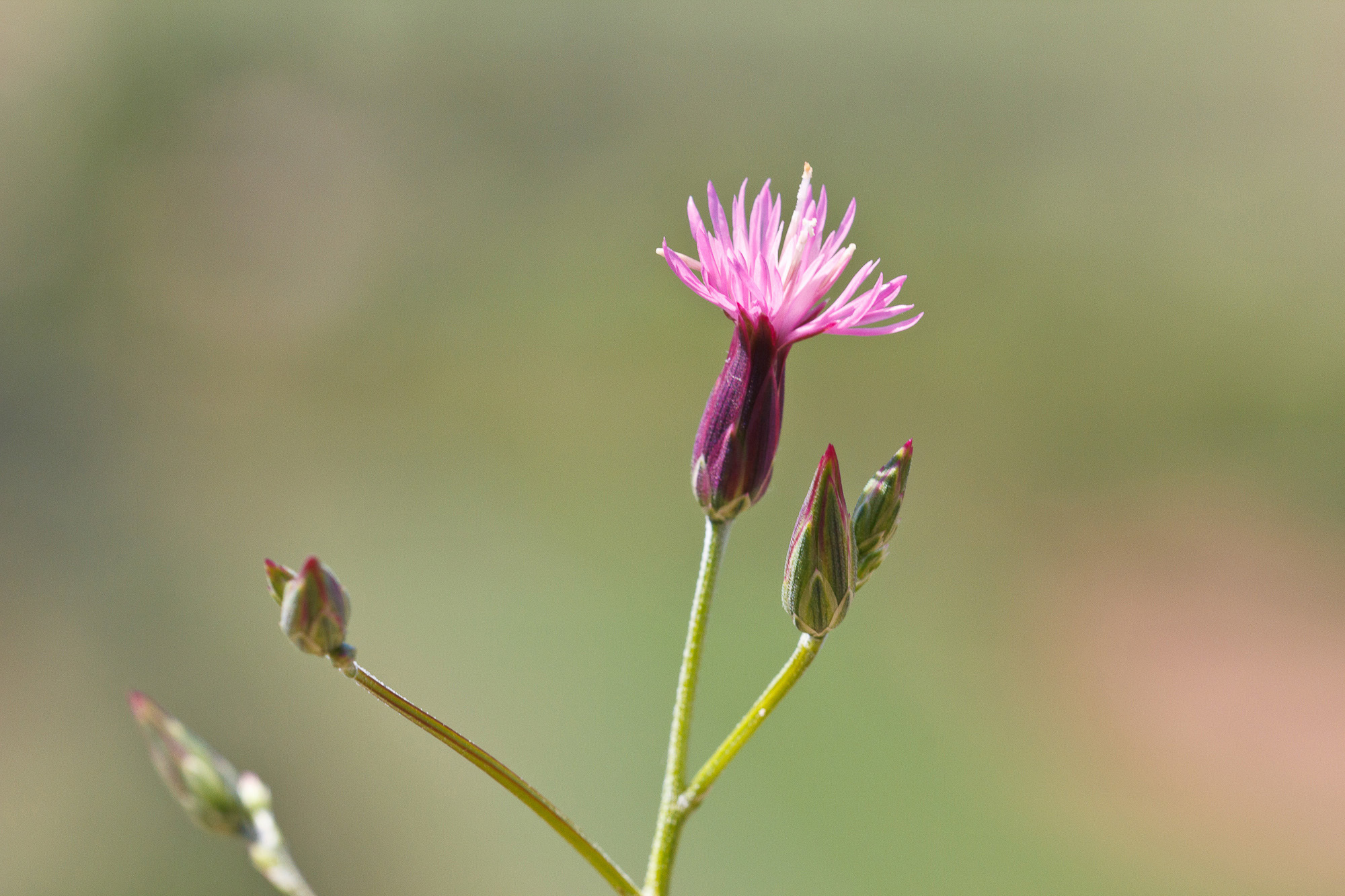 2101 Crupina vulgaris - Plante annuelle de 2-5 dm dressée à rameaux grêles, nus, dressés - feuilles rudes, les radicales indivises, les caulinaires pennatiséquées à segments linéaires denticulés - capitules à 4-5 fleurs - involucre oblong, glabre, atténué à la base - akènes gros, renflés, obconiques, longs de 4 mm 12 environ, plus courts que l'aigrette à soies d'un roux foncé ou d'un brun noir - aigrette intérieure formée de 10 écailles - ombilic basilaire, suborbiculaire - fleurs purpurines.