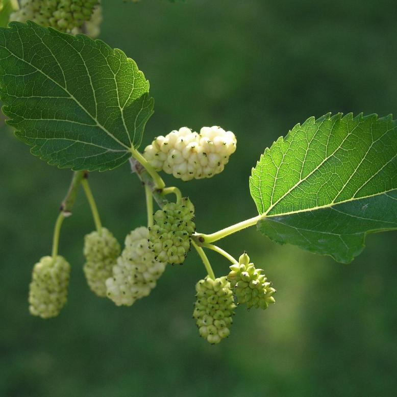 Les feuilles du mûrier blanc, nourrissant le Bombyx du Mûrier, sont également utilisées comme fourrage pour le bétail et en tant que complément pour la volaille. En séchant, elles donnent une tisane appréciée pour ses propriétés antioxydantes et anti-diabétiques. Ce cultivar, souvent cultivé sous forme de haie, permet de récolter facilement les feuilles, tout en offrant un port en tétard après les émondages. Ses fruits, comestibles crus ou secs, ne laissent pas de taches, contrairement à ceux du mûrier noir, et son ombre agréable est appréciée pendant l'été.